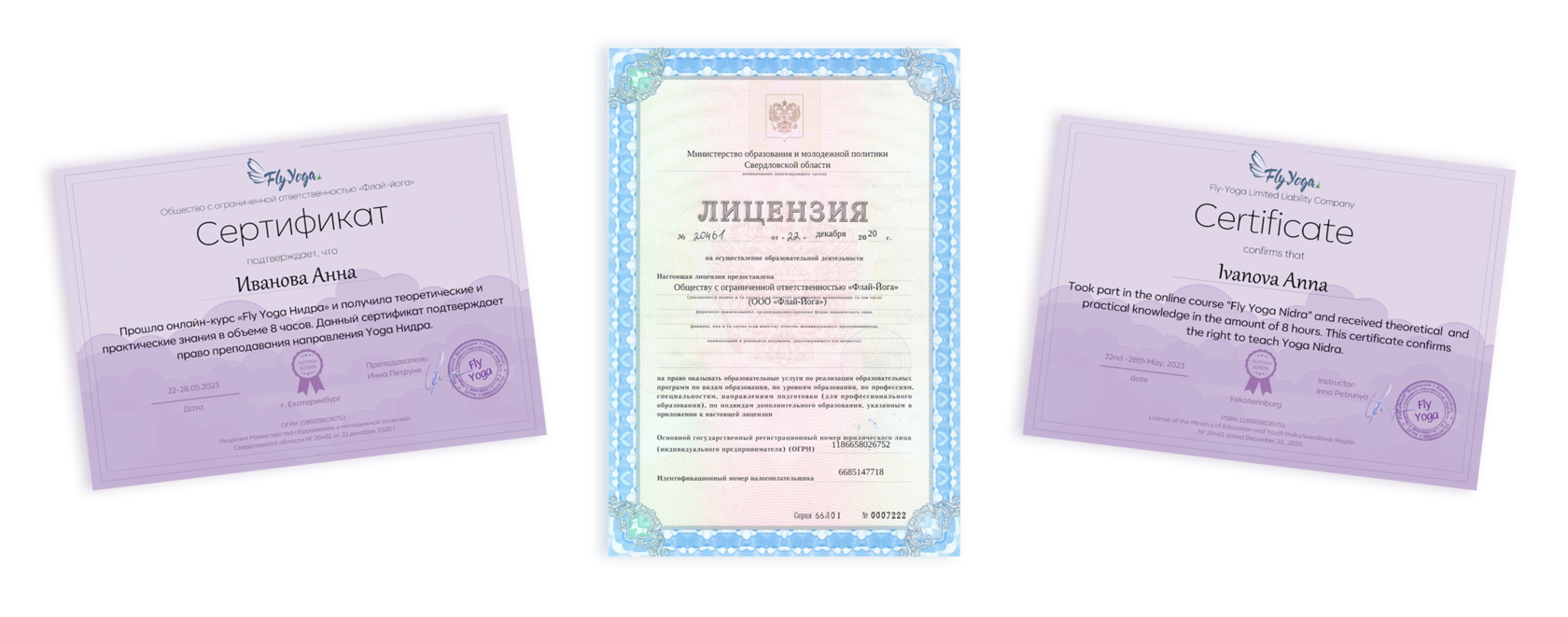 4 видео-урока 4 живых вебинара с преподавателем Текст для практики Аудиозапись практики йога нидра "Первый полет" Подготовка и сдача экзамена Получение сертификата после успешного прохождения обучения 1 месяц доступа на онлайн портал